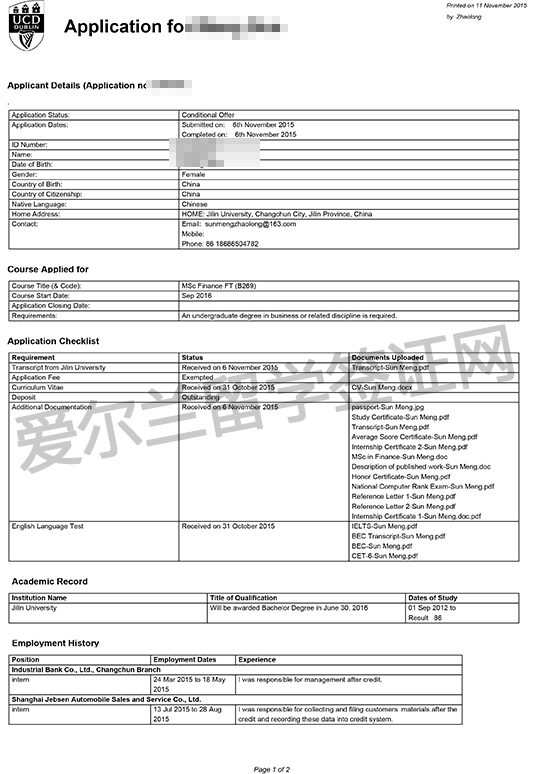 经过兆龙留学-爱尔兰留学签证网老师的努力,成功为兆龙留学孙同学申请到爱尔兰都柏林大学金融硕士录取OFFER,以下是他的offer分享,在此祝他留学之路一切顺利!